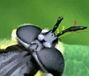 Another characteristic of this species is that the first 2 antennal segments are approximately the same length when combined as the third segment, as shown below.
