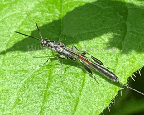 Not seen very often in the garden, we have to mark this as a most likely species on account of there being a few other closely related wasps that look similar. An amazing looking insect which lays its eggs in the nests of other solitary wasps and bees apparently, which then feed on the grubs.