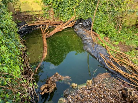 Since trimming the hazel, we are glad to see the rest has started to come into leaf. We will wait for the canopy to open and then see if we still need to knock off a few branches here and there. All the larger material was then incorporated into the pond edge habitat.